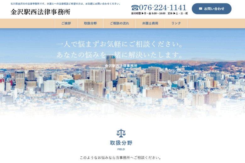 金沢駅西法律事務所は、日常生活や事業活動の中で生じる法律問題に対し、事実関係を踏まえた現実的な解決を目指し、相談者とともに対応方針を検討していく法律事務所です。