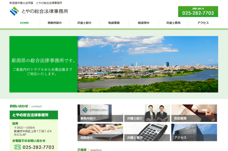 とやの総合法律事務所は、新潟市中央区上所1丁目にある法律事務所です。内山晶弁護士と太田竜弁護士の2名が設立した事務所で、2014年1月に新潟市中央区で開設されたと案内されています。異なる事務所で研鑽を積んだ2名が、必要に応じて連携しながら、個人の問題から企業法務まで幅広い相談に対応する体制を取っています。
