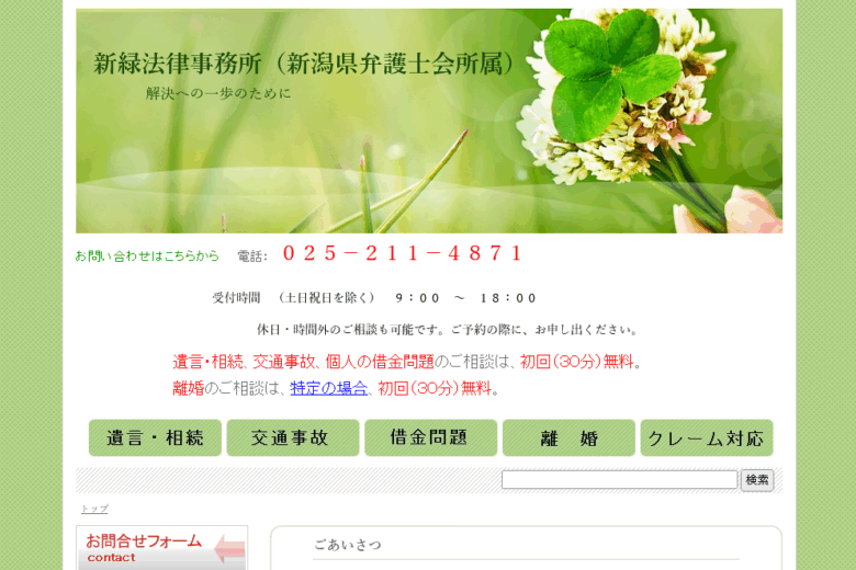 森直樹法律事務所は、新潟県上越市に所在する法律事務所です。弁護士の森直樹が開設し、地域の法律相談に対応しています。債務問題、不動産の売買や賃貸に関するトラブル、離婚や相続などの民事事件など、生活の中で生じる法律問題について幅広く相談を受け付けています。