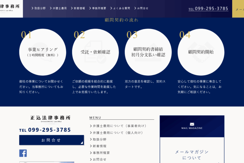 正込法律事務所は鹿児島市電「朝日通」停留所から徒歩1分という利便性の高い立地にあり、地域の暮らしやビジネスに寄り添う相談窓口として利用しやすい環境を整えています。相談料は30分5,500円(税込)を目安として掲示しており、相談前に費用の目安を丁寧に説明する姿勢が見られます。依頼者の事情に応じた柔軟な対応を心がけ、地域の法的課題の解決を支援する事務所として評価されています。