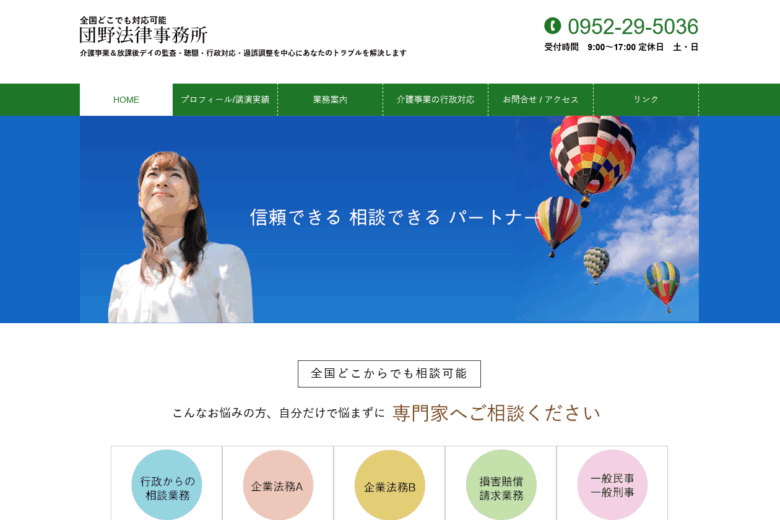 団野法律事務所は、佐賀県佐賀市駅南本町5-5 サンシャインM2階 に事務所を構える法律事務所で、弁護士・団野克己が代表を務めています(受付は平日9:00〜17:00、土日は定休)。業務案内では、特に介護事業所、障害福祉サービス事業、放課後等デイサービス等の運営に関わる行政手続き(監査・聴聞・行政処分対応)への支援を中心に取り扱う専門性が打ち出されています。行政対応では、監査手続・聴聞・審査請求などの実務的なプロセスについて経験を活かした助言・代理が可能であり、こうした事案に不慣れな事業者が直面する課題に対応しています。