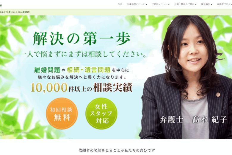 弁護士法人ときわ法律事務所は、熊本市中央区花畑町のMY熊本ビル3階に事務所を構える法律事務所で、県内で暮らしの法律相談に幅広く対応しています。離婚・親権問題、相続・遺言作成、借金・債務整理などの生活密着型案件を中心に取り扱い、依頼者一人ひとりの事情に寄り添う対応を大切にしているとの姿勢が打ち出されています。相談者に対して専門用語を使わずわかりやすい説明を行うこと、案件の進捗を適時共有することを重視し、安心して相談・依頼できる体制を整えています。