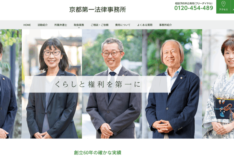 京都第一法律事務所は、京都府京都市中京区烏丸通二条にある歴史ある法律事務所です。1961年7月の設立以来、働く人々や市民の生活と権利の擁護を目的に活動してきた伝統を持ち、豊富な実務経験と総合力を強みとしてあらゆる法的課題に対応してきました。現在、20代から70代までの弁護士19名(男性13名・女性6名)が所属し、それぞれの専門性と経験を活かしながら、依頼者の多様なニーズに応える体制を整えています。