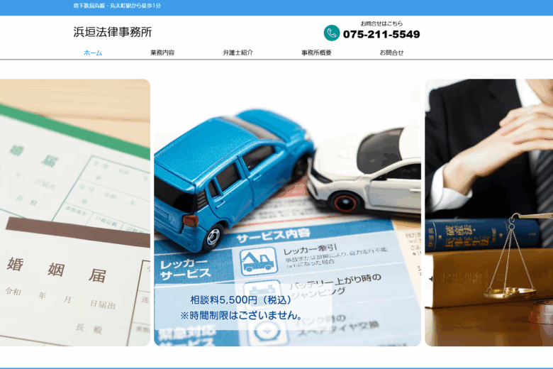 浜垣法律事務所は、京都市中京区に事務所を構える法律事務所です。地下鉄烏丸線・丸太町駅から徒歩圏内に位置し、日常的な法律相談から専門的な案件まで幅広く対応しています。