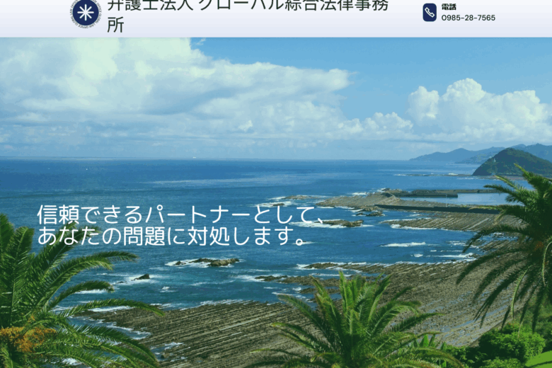 弁護士法人 グローバル綜合法律事務所は、宮崎県宮崎市老松1丁目3-17 を拠点にリーガルサービスを提供する法律事務所です。所長の 黒原智宏弁護士 は一橋大学法学部卒業後、東京での実務を経て2008年に宮崎で事務所を開設。企業法務のみならず、民事事件、家事事件、刑事弁護など幅広い分野で活躍してきました。依頼者の信頼と利益を最優先に、最良の解決策を模索する姿勢が掲げられています。
