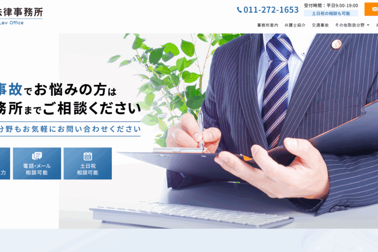 事務所は、札幌市中央区の繁華街に位置し、地元住民だけでなく北海道全域からの相談に対応しています。問い合わせは電話(011-272-1653)で受け付けており、相談時間は平日9:00~19:00、土日祝日も相談可能な場合があると公式サイトに案内されています。