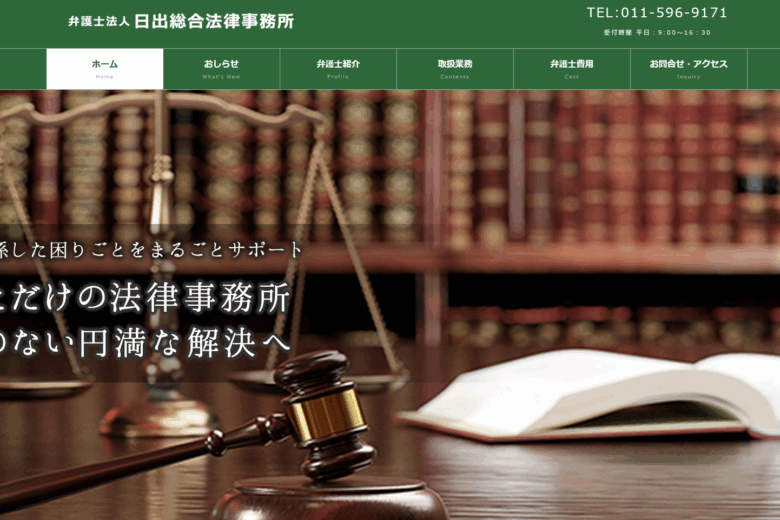 弁護士法人 日出総合法律事務所は、北海道札幌市中央区大通西14丁目1番13号 北日本南大通ビル8階に事務所を構える総合法律事務所です。公式サイトでは、「様々な紛争に素早く対応し、安心へのサポートを実施すること」を掲げ、依頼者が抱える法的課題に対し、的確かつ丁寧な支援を提供する姿勢が示されています。
